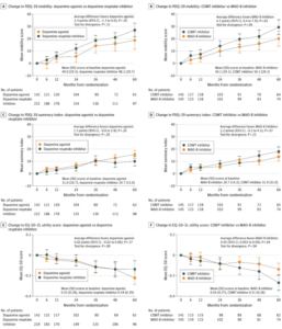 運動合併症を有するPDに追加する薬剤の効果。MAO-B阻害薬とCOMT阻害薬を比較した初めての報告と思われます。今回は前者に軍配が上がりましたが、両者の使い分けについての知見の蓄積が期待されます。